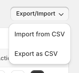 Click the Import button to open the Import page, where you can upload locations from a .csv file or download a template file to get started.