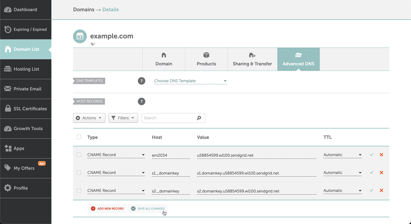 Add the provided records in your domain provider (Cloudflare, GoDaddy, Namecheap, etc.)