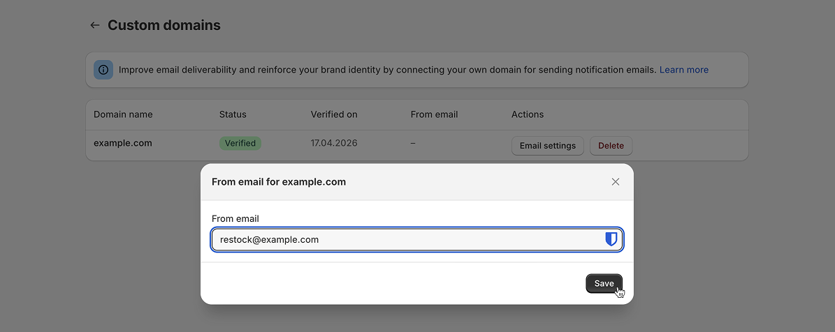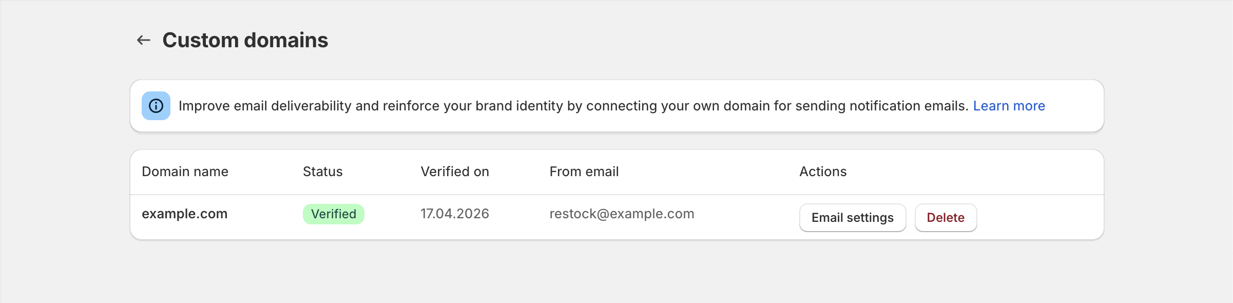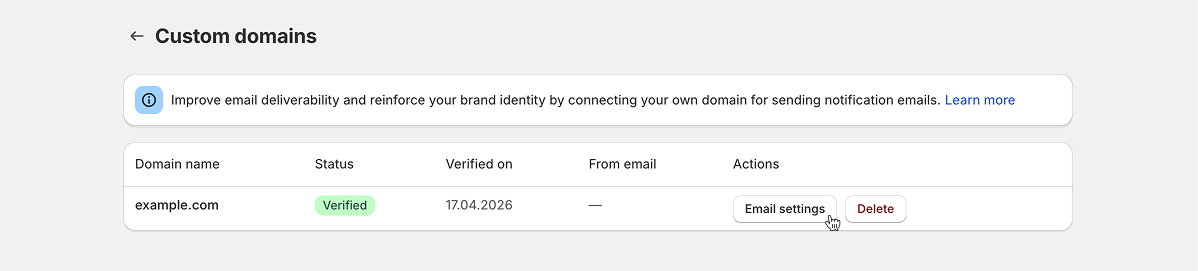 If you don’t configure one, emails are sent using a shared default domain provided by the email service. While this works, it may reduce brand consistency and deliverability trust.